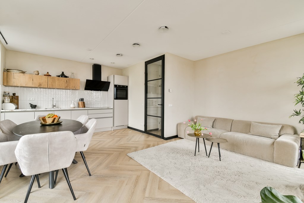 Dit moderne appartement is hoogwaardig afgewerkt en voorzien van een luxe PVC visgraatvloer met vloerverwarming door de gehele woning. De wanden zijn stijlvol afgewerkt met natuurlijke leemverf, wat zorgt voor een warme en rustige uitstraling. De moderne keuken beschikt over een keramisch werkblad en diverse inbouwapparatuur, en de ruime badkamer is uitgerust met een comfortabele regendouche en een toilet met bidetfunctie.