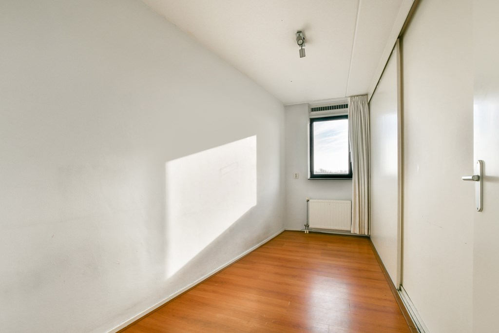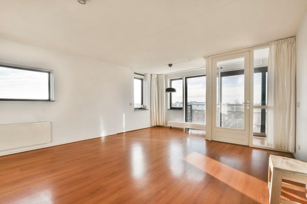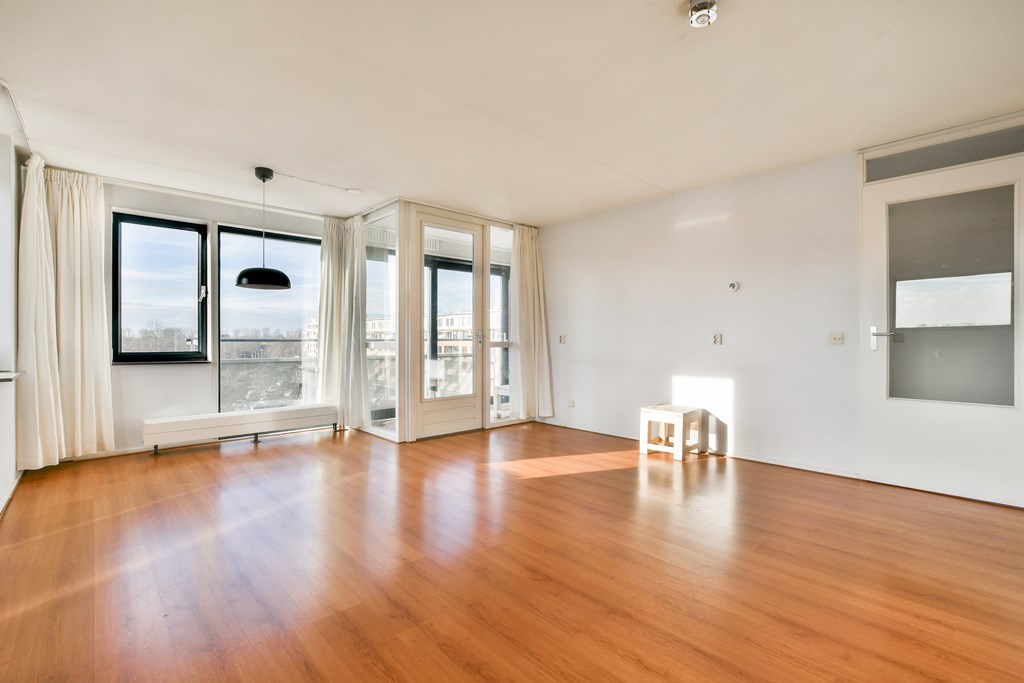 In the quiet and green neighbourhood of Nieuw-Sloten, we offer this spacious and bright three-room apartment of approximately 74 m² with PRIVATE PARKING SPACE on a secluded site with barrier.. The apartment is located in a well-maintained apartment complex with an elevator and features a sunny south-facing balcony with a beautiful unobstructed view over the neighbourhood. The large windows provide plenty of natural light, making the living room feel spacious and comfortable — a pleasant place where you will immediately feel at home.